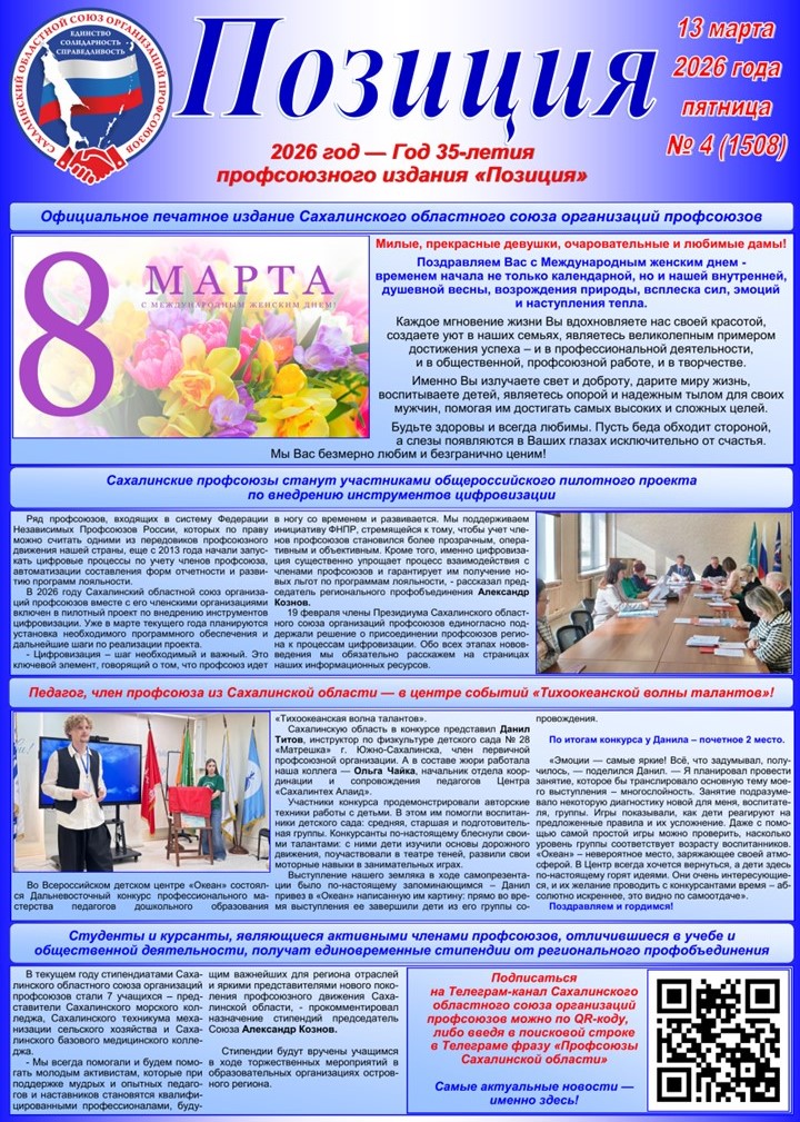 Заседание рабочей группы по охране труда областной трехсторонней комиссии по регулированию социально-трудовых отношений. Работа по приему заявок для участия в конкурсе Союза «Лучший социальный партнер года». Заседание Президиума Союза. Проведение плановых проверок правовым и техническим инспекторами труда Союза в организациях и на предприятиях Сахалинской области. Приемы граждан... На нашем сайте опубликован план работы Сахалинского областного союза организаций профсоюзов и его членских организаций на март 2026 года.