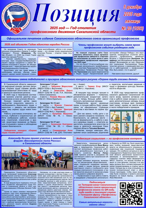 Рады Вас приветствовать на страницах интернет-сайта Сахалинского областного союза организаций профсоюзов!