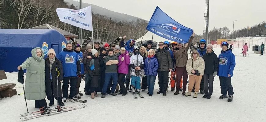 Активисты Сахалинского филиала РТРС организовали массовый спуск на лыжах с высоты 780 метров одной из пяти захватывающих трасс горы «Красная»