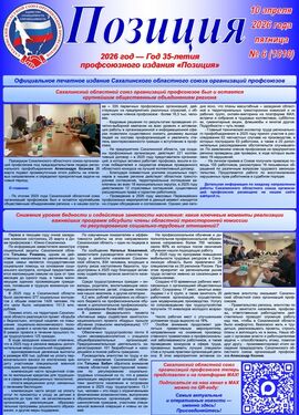 Профсоюзам Сахалинской области исполнилось 100 лет! Стартовал прием заявок на участие в Молодежном профсоюзном форуме-2025! Об этом и многом другом читайте в новом выпуске информационного бюллетеня "Позиция".
